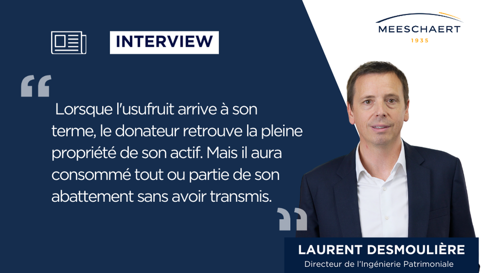 Dans un article publié par Les Echos, Laurent Desmoulière, Directeur de l’ingénierie patrimoniale de Meeschaert Gestion Privée, revient sur trois scénarios de démembrement permettant de réduire significativement la fiscalité immobilière : donation temporaire d’usufruit, achat de nue-propriété et donation avec réserve d’usufruit viagère.